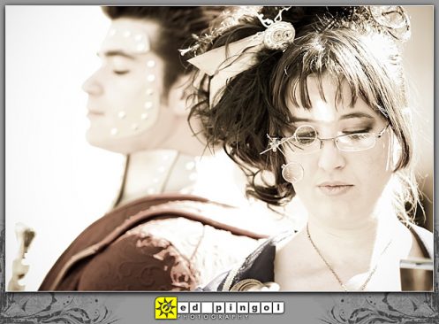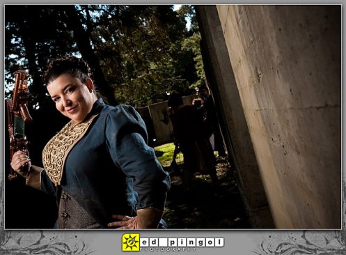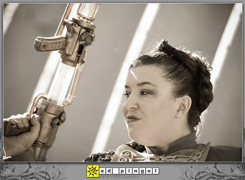 We wanted to do another photoshoot with Ed Pingol, an amazing photographer in our area, and were waiting for suitable project. We’ve been seeing steampunk showing up at the cons recently, and we really like the aesthetic and the original aspects. It seemed like the perfect project so we rounded up some friends, designed and made our own costumes, and ended up with a fantastic photoshoot.